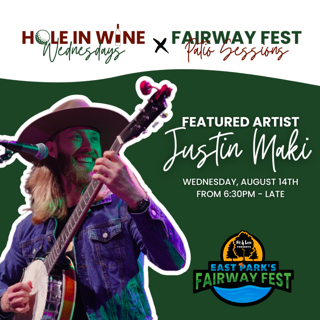Join us for a great evening with Justin Maki performing live at the Fit4Less Fairway Fest Patio Sessions at East Park on August 14 at 6:30pm!