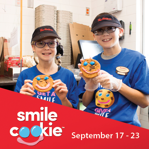 WHEN YOU PURCHASE A SMILE COOKIE AT PARTICIPATING TIM HORTONS LOCATIONS,