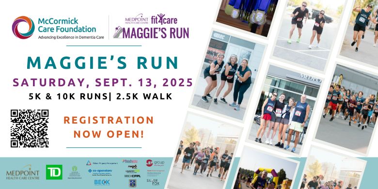 Maggie’s Run is an annual community event honouring the legacy of Maggie Hanham—a devoted perinatal nurse, loving caregiver, and advocate for compassionate senior care who was later diagnosed with Alzheimer’s herself. Her story continues to inspire this powerful event in support of dementia and senior care at McCormick Care Group.