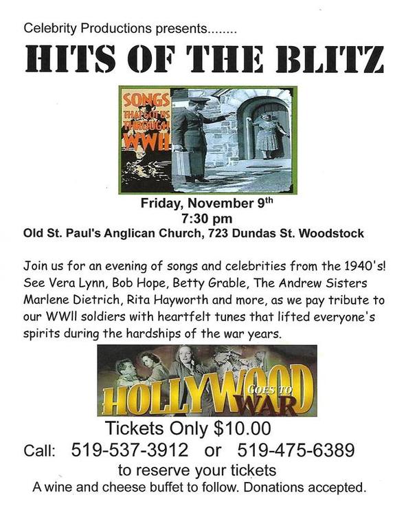 Old St Paul’s Church in Woodstock invites you to an evening of songs and “celebrities” from the 1940’s! See Vera Lynn, Bob Hope, Betty Grable, The Andrew Sisters, Marlene Dietrich, Rita Hayworth and more, as we pay tribute to our WWll soldiers with the heartfelt tunes that lifted everyone’s spirits during the hardships of the war years.