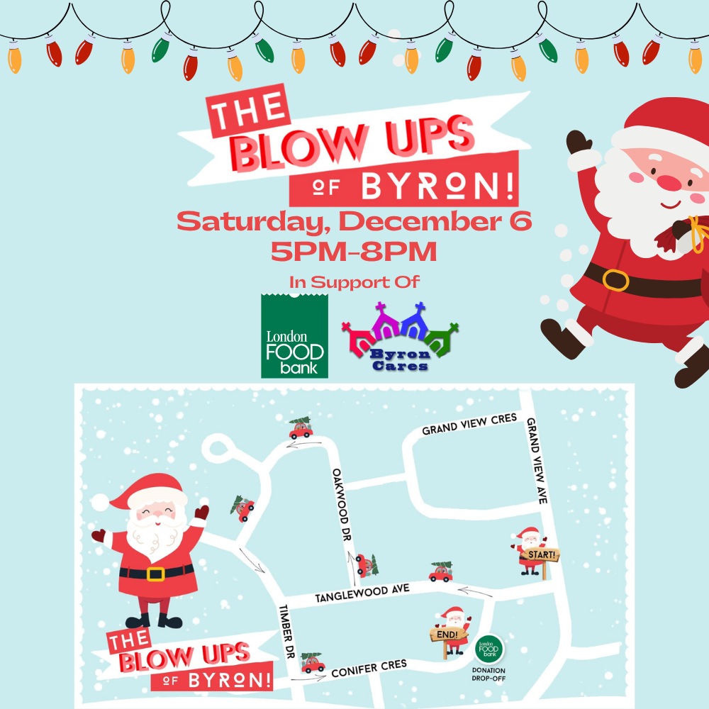 This year’s event supports the London Food Bank and Byron Cares — so bring a donation and enjoy a festive night of holiday cheer, community spirit, and larger-than-life decorations!
