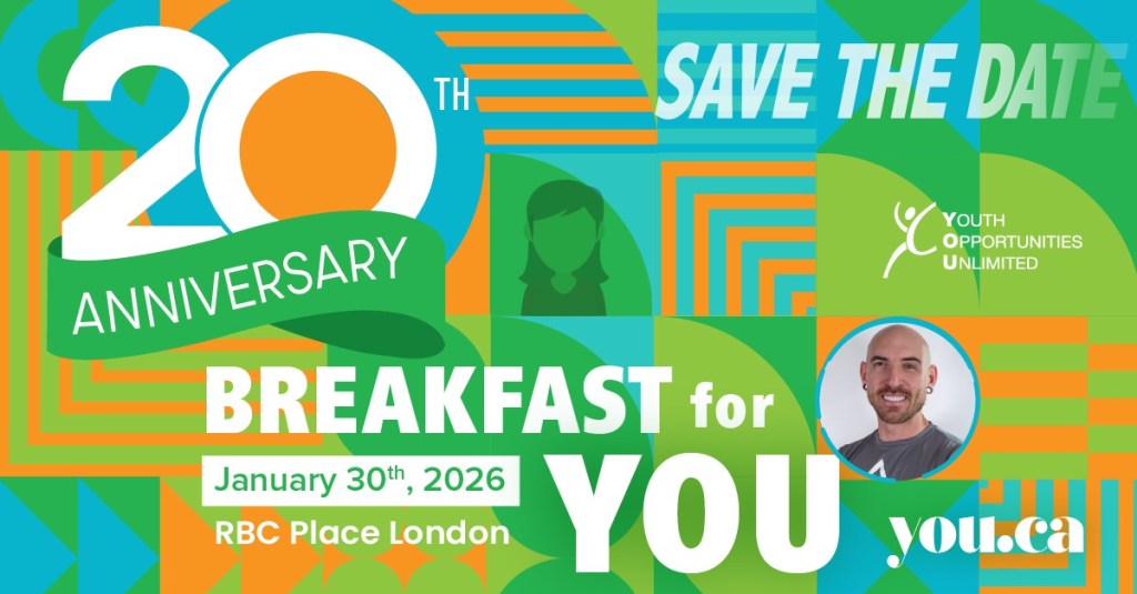 Youth Opportunities Unlimited is back with its 20th Annual Breakfast for YOU on Friday, January 30 at RBC Place London! Join 1,200 community leaders for a morning of connection, inspiration, and support for youth across London and Middlesex County.