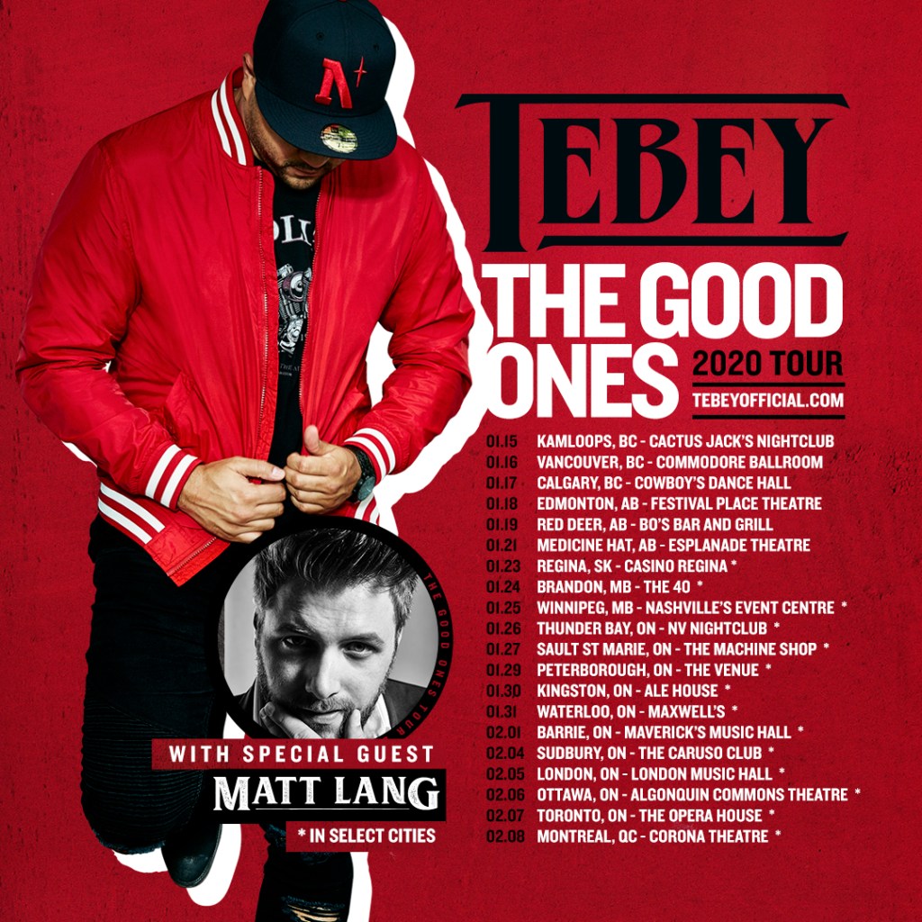 Today, Canadian producer, hit singer-songwriter and 2019 CCMA Album of The Year nominee, Tebey announced The Good Ones tour, kicking off in Kamloops on January 15th, 2020 and wrapping on February 8, 2020 in Montreal, QC. The pre-sale commences October 1st with an on-sale date of October 4th.