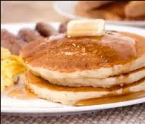 Pancakes, Sausages, Beverage, Fruit & Dessert Included