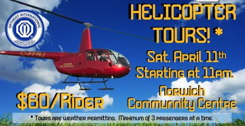Come out on April 11th in the Optimist Club of Norwich & District’s Inaugural Helicopter Tours!