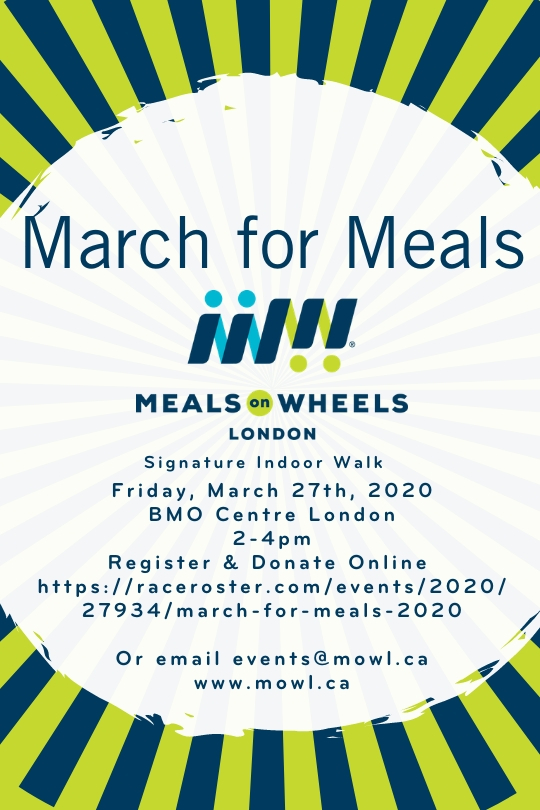 March For Meals Where BMO Centre , 295 Rectory Street Map When Mar 27/20 02:00 PM - Mar 27/20 04:00 PM Age All
