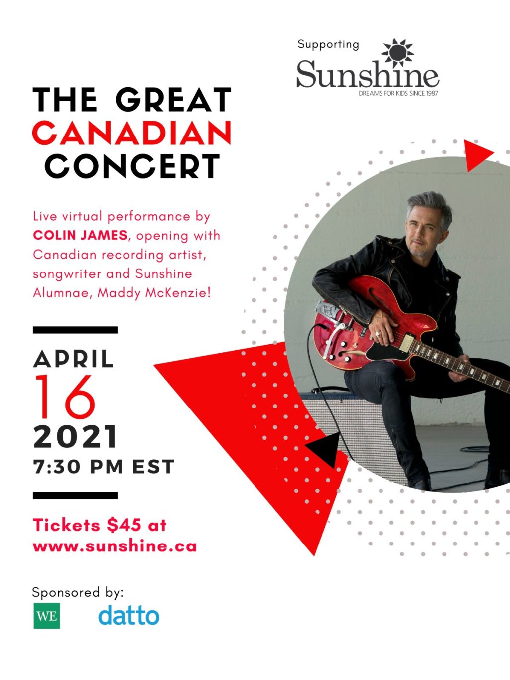 A live virtual performance by COLIN JAMES; opening with Canadian recording artist, songwriter, and Sunshine Alumnae, Maddy McKenzie and Patrick James Clark.