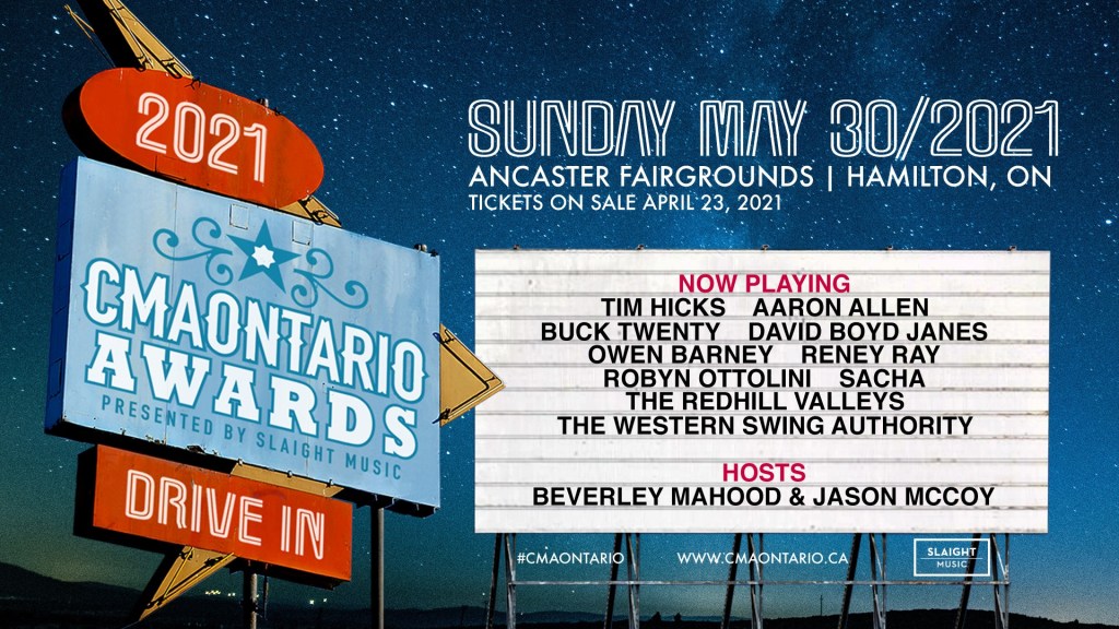 Hosted by Jason McCoy and Beverley Mahood, the CMAOntario Award Show will close out the CMAOntario Festival & Awards Weekend May 28 – 30, 2021. After presenting the first ever, live, drive-in country music awards show in October 2020, CMAOntario is happy to do it all again this year in Hamilton. The CMAOntario Awards, presented by Slaight Music, will acknowledge the talent and achievements of Ontario’s country music industry across 18 categories.