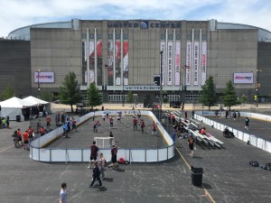 What separates HockeyFest-Game On from other road hockey tournaments? Each game is played on a 42.5ft x 100ft surface with FULL patented dasher boards created by Athletic Sport Systems and netting behind each goalie to ensure no time is lost retrieving balls. All games will be played with certified referees from local referee associations.