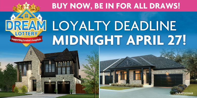 The Dream Lottery, in support of London’s regional hospitals is back, featuring the chance to WIN 1 of 2 Dream Homes or $1,000,000 cash plus THOUSANDS of incredible prizes!