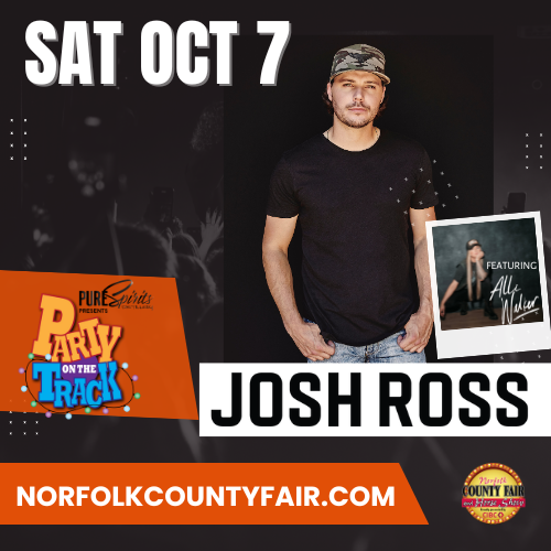 Alli Walker will warm up the crowd before one of this generation’s most promising young Country artists, Josh Ross, headlines the grandstand show. Echoing the primary themes of country in his own pop-rock-infused way, Nashville-oriented artist Josh Ross’s take on love, work, and play is one often documented through his own whirlwind experiences.