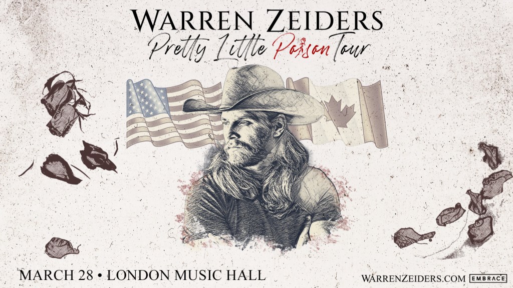 Warren Zeiders at London Music Hall Where London Music Hall, London, ON Map When Mar 28/24 07:00 PM - Mar 28/24 11:00 PM Age All WARREN ZEIDERS MARCH 28, 2024 LONDON MUSIC HALL LONDON, ONTARIO TICKETS ON SALE OCTOBER 27, 2023 CLICK HERE FOR TICKET DETAILS